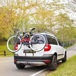 Der Gepäckträger gibt einen größeren Abstand zwischen dem Fahrrad und dem Kofferraum des Autos, um möglichen Kontakt zu vermeiden.