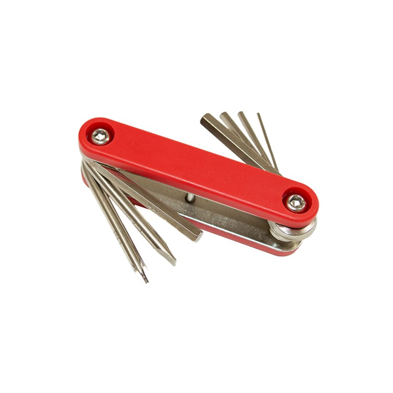 Der Innensechskantschlüssel ist ein Mehrzweckwerkzeug, mit dem Sie während Ihrer Fahrradtour Einstellungen oder Reparaturen vornehmen können. Er besteht aus 7 Werkzeugen in Dieses Tool begleitet Sie während Ihrer Radtouren, ohne zu viel Platz zu beanspruchen.