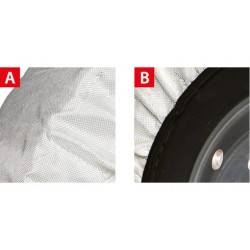 B- Spannsystem: Einfache Nylonplane, gespannt durch ein elastisches Band, wodurch die Socke an den Reifen angepasst werden kann.