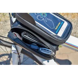 Fahrradtaschen mit Smartphone-Halterung - Befestigung am Fahrradrahmen - 2 Taschen und 1 abnehmbare Smartphone-Halterung kompatibel mit Telefonen bis 6.0" (15 cm)