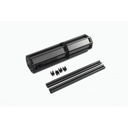 Lässt sich in wenigen Sekunden mit den mitgelieferten Metallstangen und Verbindungsstücken ohne Werkzeug befestigen. Kleine Öffnungen an den Seiten des Tabletts sorgen dafür, dass die Kappen des Anhängers nicht verloren gehen.