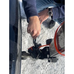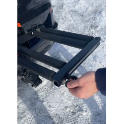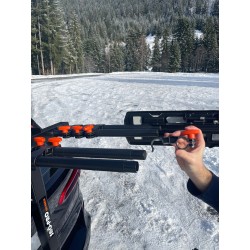 The Buzzrack ski and snowboard holder is secured to the towball with a quick and easy snap-in system. To limit the catch to the wind, your skis (snowboard) are fixed on the trance. Thanks to its padlock and key system, your skis will be safe but will remain easily accessible. Its inclination system will leave you access to the safe in the majority of cases.
