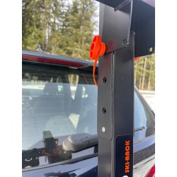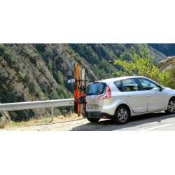The Buzzrack ski and snowboard rack is attached to the hitch ball by a fast, easy and secure attachment system. To limit the grip in the wind, your skis (snowboard) are fixed on the edge. Thanks to its padlock and key wheel system, your skis will be safe but will remain easily accessible. Its tilt system allows you access to the trunk.