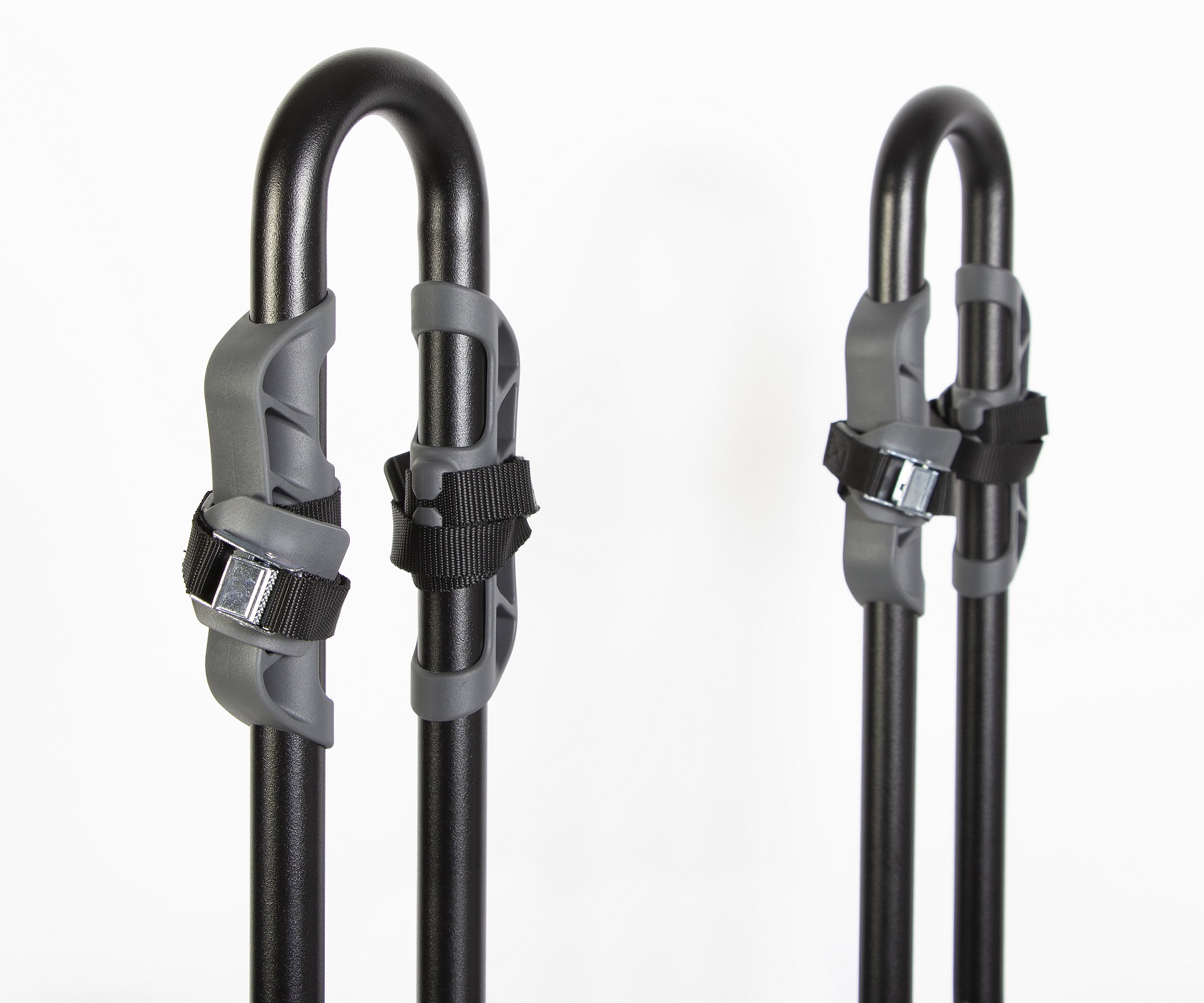 Mounting pads, straps and guards provide maximum protection for the bike.