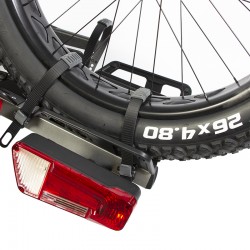 The E Scorpion XL is the superlative product for very large E-bikes, especially mountain bikes, and for fat bikes. Its oversized rails accommodate tyres up to 5 inches. Its oversized telescopic frame allows you to attach any type of card. No need to carry it, you can roll it thanks to its integrated wheels. Its anti-corrosion treatment and high quality welds ensure an exceptional life span. Delivered fully assembled, all you have to do is attach the lighting and you can use your bike rack immediately.
