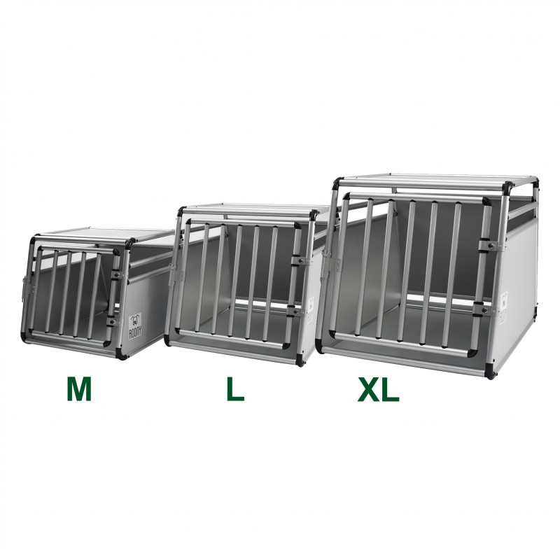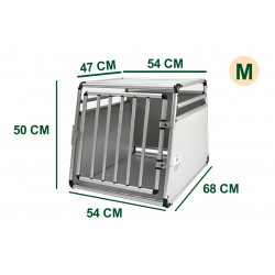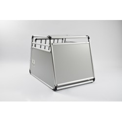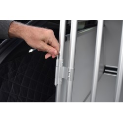 Aluminium transport crate for dogs. Ideal for transporting small to medium-sized dogs in the car. Safe and easy to assemble and disassemble. Sloping bottom to adapt to the angle of the boot. Secure latch closure. Assembles/dismantles in 10 minutes. Lightweight and strong, it is made from round-section tubing to avoid any risk of injury.