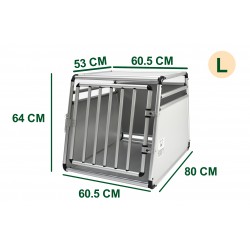 Aluminium transport cage for dogs. It is an ideal solution for transporting small to medium-sized dogs by car. Safe, odorless and non-harmful. Easy to assemble and disassemble. Inclined bottom to adapt to the angle of the trunk. Secure latch closure. Assembly/disassembly in 10 minutes. Light and resistant, it is manufactured with tubes of round sections to avoid any risk of injury.