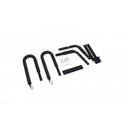 Surfboard rack for bike, to be mounted on the luggage rack of your bike or scooter. Easy mounting with screws provided. Lightweight aluminium arms, elasticated to secure the surfboard. Adapt your riding to the traffic conditions and the wind load of your surfboard, use for short trips, do not ride faster than 25km/h.