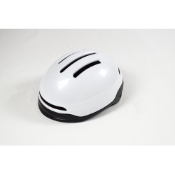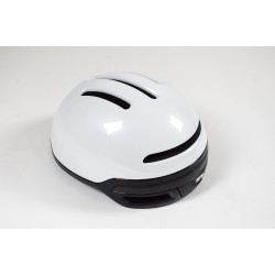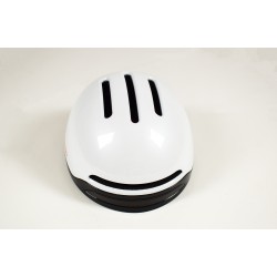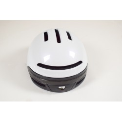 Casque urbain taille M-L avec fonctions intelligentes CLIGNOTANT et FREINAGE. Grâce à sa puce ST32 made in US et son gyroscope allemand BOSCH, ces fonctions sont assurées automatiquement et sans contrôle à distance. 24 LED avant et 48 LED arrière. très léger 360g, waterproof IP55. Autonomie 8 heures, rechargeable via câble USB fourni, piles interchangeables en fin de vie. Couleur blanc.