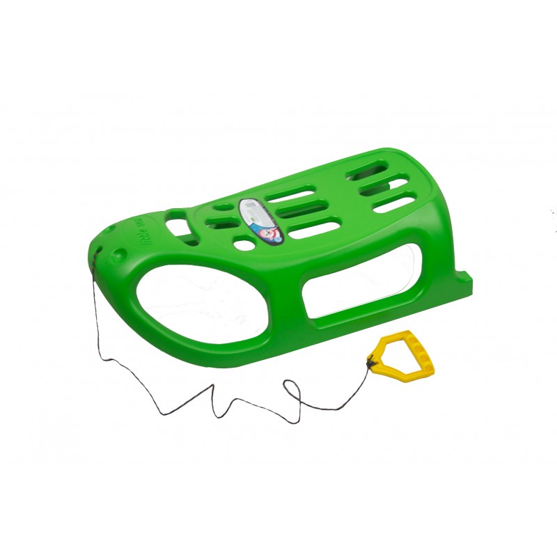 Un traineau robuste et rapide. La base est équipée de glissières en acier.Le traineau est équipé d'une poignée et d'un cordon pratique pour pouvoir le tirer sur la neige.Utilisation des pieds pour pouvoir ralentir et s'arrêter.
