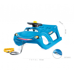 Traineau enfant avec klaxon et volant fictif - bleu. Ce traîneau rapide a un design qui garantit une conduite sûre et confortable. Le traineau est équipé d'une ficelle pour pouvoir le tirer sur la neige. Utilisation des pieds pour pouvoir ralentir et s'arrêter.