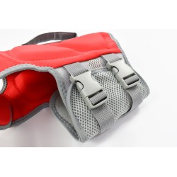 Ce gilet de sauvetage garantira la sécurité de votre chien pendant les jeux d'eau. La sangle de poitrine et les deux sangles ventrales sont ajustables à votre chien afin que le gilet s'adapte parfaitement. Les loquets de sécurités empêchent l'ouverture accidentelle du gilet. La couleur rouge vif aide à ce que votre chien soit toujours bien visible. Équipé d'une poignée dorsale qui permet une prise et un contrôle.