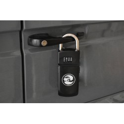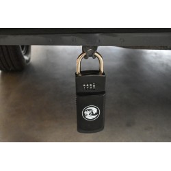 Serrure avec combinaison 4 chiffres programmables. Arrière du cadenas avec protection mousse pour la carrosserie de votre véhicule
