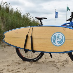 Porte surfboard pour vélo, se monte sur la tige de selle. Montage simple avec des vis fournies, l'angle entre les bras est réglable. Ne pas serrer trop fort la tige de selle de votre vélo si elle est en carbone. Adapter votre conduite aux conditions de circulation et de prise au vent de votre surfboard, à utiliser pour de petits parcours, ne pas rouler à plus de 25km/h.
