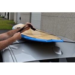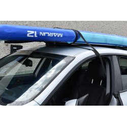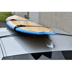 Barres de toit souple pour transporter votre surfboard / sup. S'accrochent par l'intérieur de la voiture en faisant passer les sangles par les fenêtres latérales. Ce produit n'est pas homologué à la norme ISO, il ne peut servir que pour des déplacements courts, à une vitesse limitée.