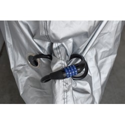 Questa copertura per bicicletta è la soluzione ideale per proteggere la vostra bicicletta da graffi, polvere, pioggia e sguardi. Le coperture dispongono di uno spazio previsto per passare un lucchetto per mettere in sicurezza la vostra bicicletta e la copertura.Dalla taglia M (bici da corsa) alla taglia XL (VTT 29'') troverete necessariamente la copertura adatta alla vostra bicicletta.