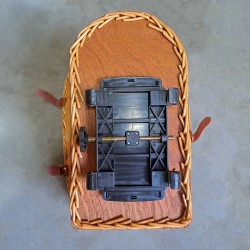 Cestino da trasporto multiuso in vimini, facile da installare e rimuovere grazie ai ganci in metallo. Interno spazioso e accessibile. Con maniglia per portarlo ovunque. Sicuro, inodore, resistente e innocuo.