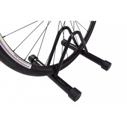 Rata in metallo nero per 1 bicicletta, permette una tenuta stabile della vostra bicicletta. Per pneumatici fino a 2,5 pollici di diametro. Si adatta a qualsiasi tipo di ruote da 16 a 29 pollici. Può anche essere fissato a terra grazie ai suoi fori di fissaggio. Dimensione (l*L*h): 37*31*23 cm
