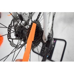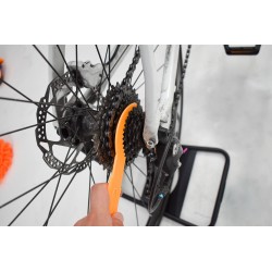 Complete fietsreinigingsset, bestaande uit een microvezel reinigingshandschoen, een bandenreinigingsborstel, een set borstels en een klauw voor grondige reiniging van de cassette, een tandwielborstel voor grondige reiniging van de ketting en tandwielen. 2 borstels met harde haren, waaronder één speciaal voor het reinigen van schijfremmen. En een kettingreiniger die geschikt is voor alle soorten kettingen en fietsen.