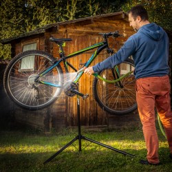 Met deze reparatiestandaard wordt de onderhoudsbeurt van jouw fiets een fluitje van een cent. De standaard kan op een comfortabele werkhoogte worden ingesteld zodat je geen last van je rug krijgt. Je klemt de fiets onder het zadel aan de standaard en hij zal stevig op zijn plek blijven hangen. De standaard is compact op te vouwen zodat je hem gemakkelijk opbergt en hij niet veel ruimte in beslag neemt.
