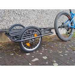 Wordt geleverd met een standaard trekhaaksysteem dat wordt bevestigd aan de snelkoppelingen van de wielen van de fiets.