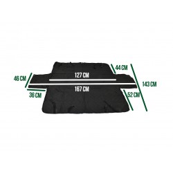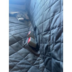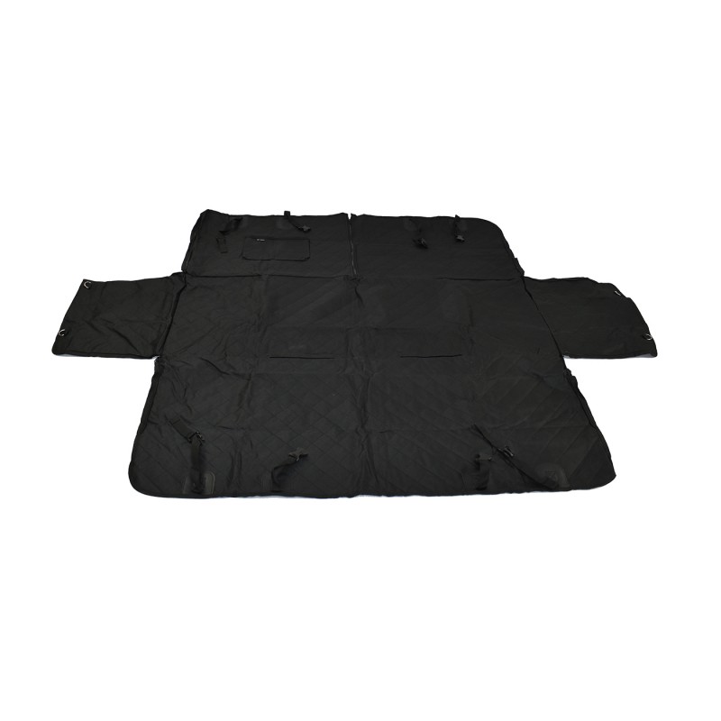 Hangmat achterbank voor honden. Breedte 127 x lengte 143cm. Beschermt de zitting tegen vuil, krassen en vocht. Met zijflappen voor deurbescherming en 2 gordelriemen meegeleverd. Gewatteerd voor optimaal comfort. Eenvoudige installatie dankzij riempjes met gespen. 2 opbergvakken. Nylon/polyester samenstelling. Gemakkelijk schoon te maken.