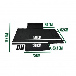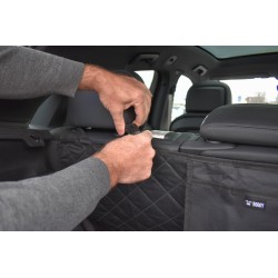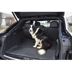 Beschermmat voor hondenslurf. Afmeting: breedte 103 tot 169 met flappen x lengte 180 cm. Met stootbescherming. Past op de meeste reiskoffers. Antislip, vochtbestendig, opbergvak. Materiaal: nylon/polyester, gemakkelijk schoon te maken.