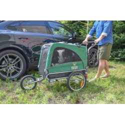 Deze fietskar is ideaal voor fietstochten met je hond. Het kan ook dienen als vervoermiddel voor je boodschappen. Reflectoren op elk wiel en aan de achterkant helpen je om zichtbaar te blijven voor anderen. Deze 2-in-1 fietskar is ook erg handig omdat hij ook als kinderwagen kan dienen. Uitgerust met een 16" wiel is hij zeer wendbaar. Dankzij de opvouwbare functie neemt hij heel weinig ruimte in voor eenvoudig opbergen.