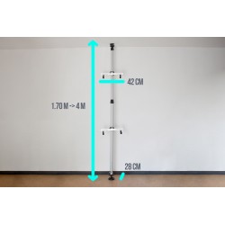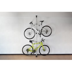 Telescopisch opbergrek voor 2 fietsen tot 30 kg. Kan in enkele minuten worden gemonteerd, de hoogte kan worden aangepast aan de hoogte van het plafond van 170 tot 400 cm. De draagarmen zijn in hoogte verstelbaar, draaien 360° en de haken zijn verstelbaar. Ruimtebesparend!