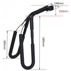 Fiets surfplank houder, te monteren op de zadelpen. Eenvoudige montage met bijgeleverde schroeven, de hoek tussen de armen is instelbaar. Draai de zadelpen van uw fiets niet te strak aan als hij van carbon is. Pas uw rijstijl aan de verkeersomstandigheden en de windbelasting van uw surfplank aan, gebruik hem voor korte ritten, rijd niet sneller dan 25 km/u.
