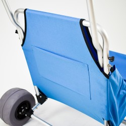 Strandtrolley met strandstoel en geïntegreerde zonwering. Het ontwerp maakt het mogelijk om SUP-peddels, surfplanken, uitrusting of uw stranduitrusting (koeler, handdoek, emmers...) te vervoeren. Uitgerust met lagedrukwielen die speciaal zijn ontworpen voor rijden in zand en moeilijk terrein. De stoel is ontworpen om zware lasten (80 kg) te kunnen vervoeren en kan zittend tot 120 kg dragen. Dankzij de specifieke pinnen kunnen de wielen gemakkelijk worden verwijderd, zodat ze plat kunnen worden opgevouwen en gemakkelijk kunnen worden opgeborgen! Afmetingen: hoogte: 109 cm- Breedte zitting: 47 cm- Diepte: 56 cm.